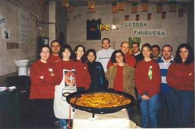Decidir un nom per a la Colla va ser difícil, vam dubtar molt, teníem noms com: la Sang del moro, el Monstre de les Gaiates, Les Orelles del Negre, però després la idea que alguna colla molt coneguda tenia nom de peix, va fer que pensàrem en un peix d’ací, de la terra com a opció per al nostre nom, i va sortir la LLISSA FANGUERA, que alguns membres de la colla coneixien bé per la seua afició a la pesca.
